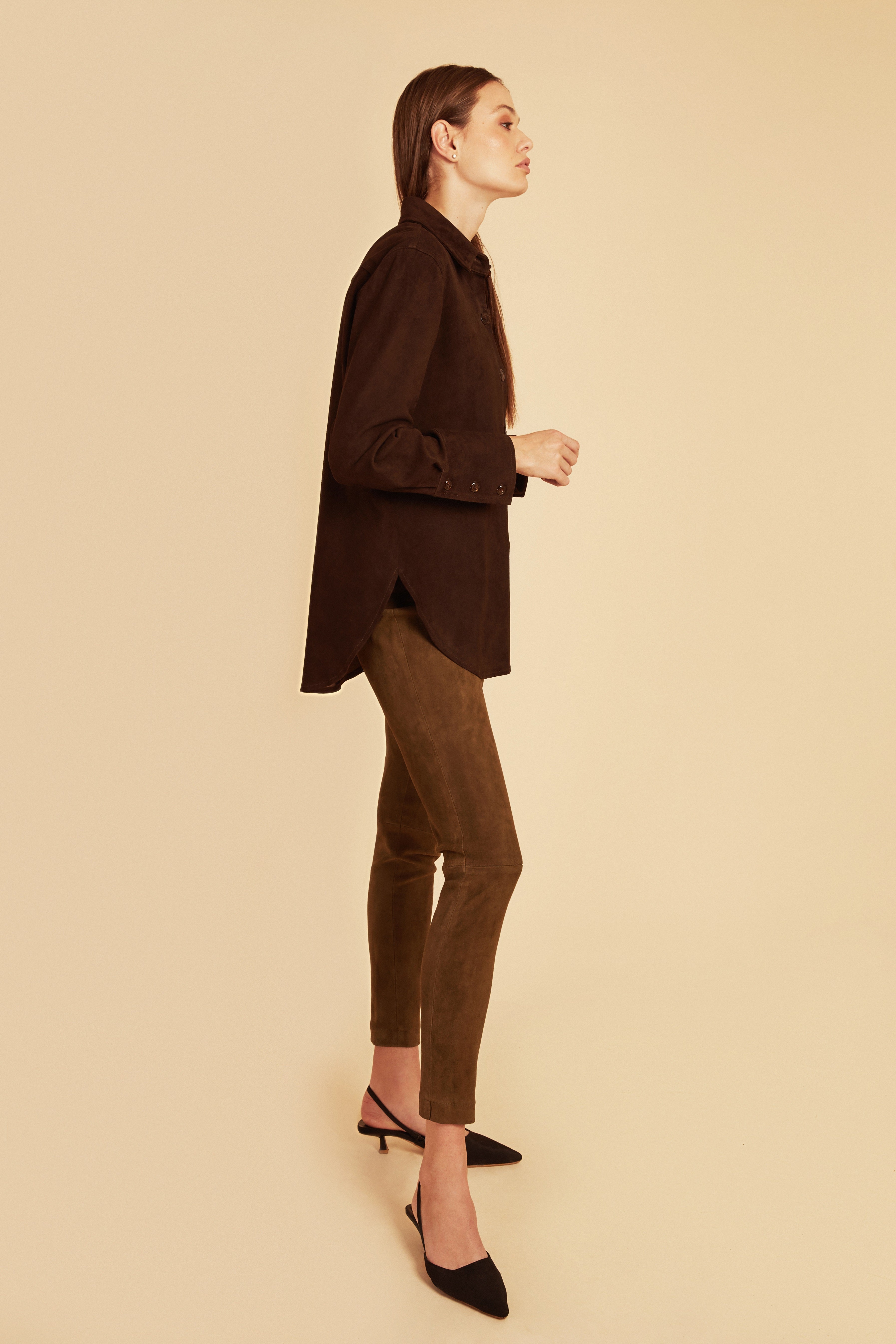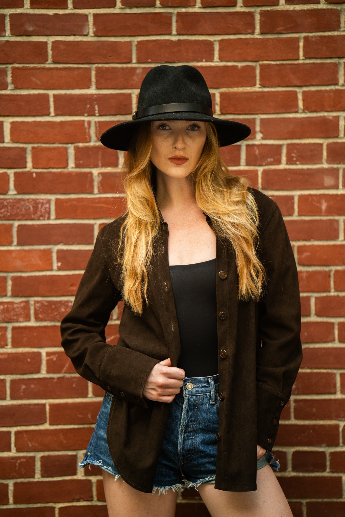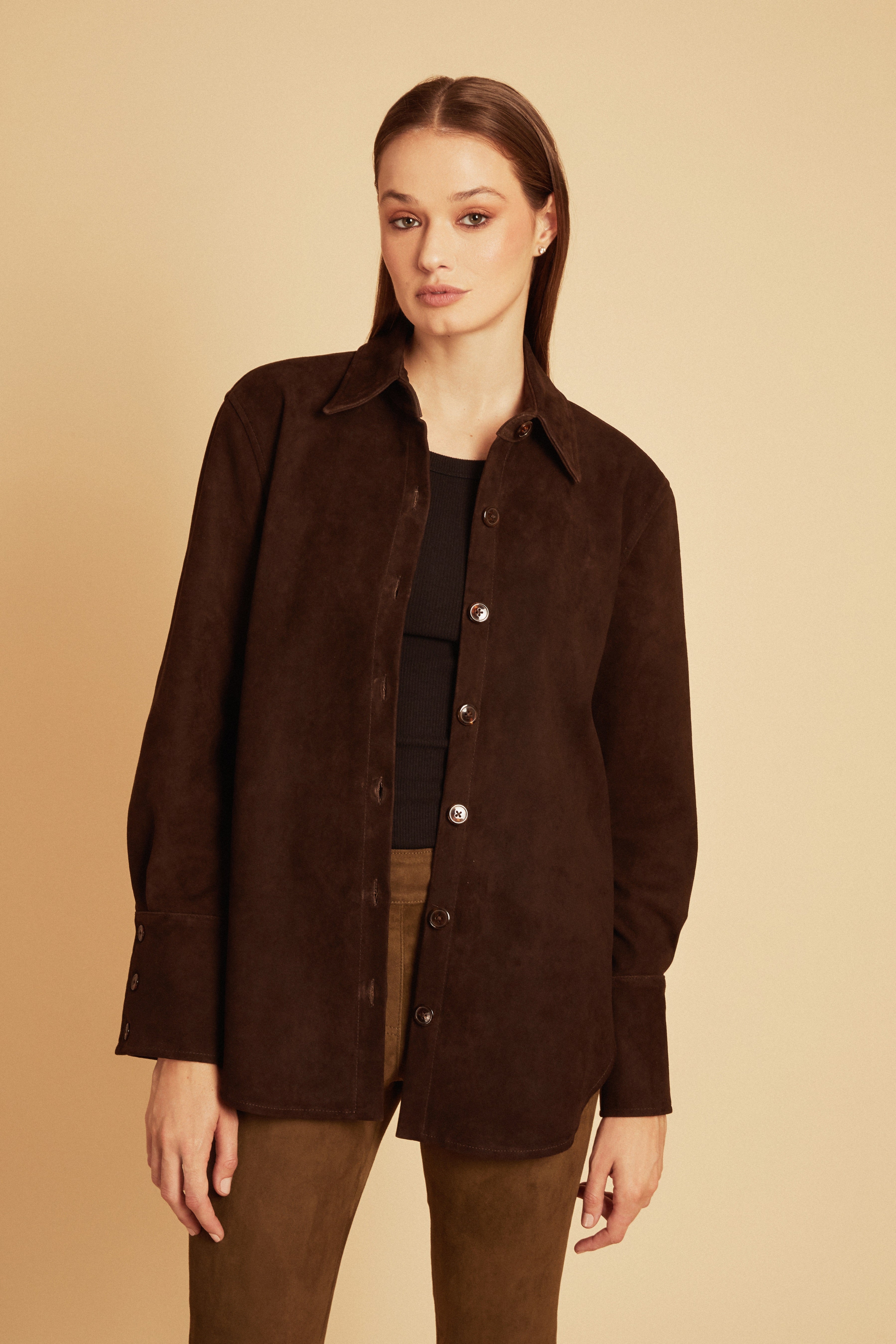 Indulge in luxury with our Chocolate Colored Western Suede Button Down. Made with 100% Italian Suede, this shirt is imported and handcrafted in the heart of NYC. Every part is selected by hand, ensuring unparalleled quality and attention to detail. The soft suede material and classic western design make this a timeless piece in any wardrobe. Elevate your style with this luxurious addition to your collection.